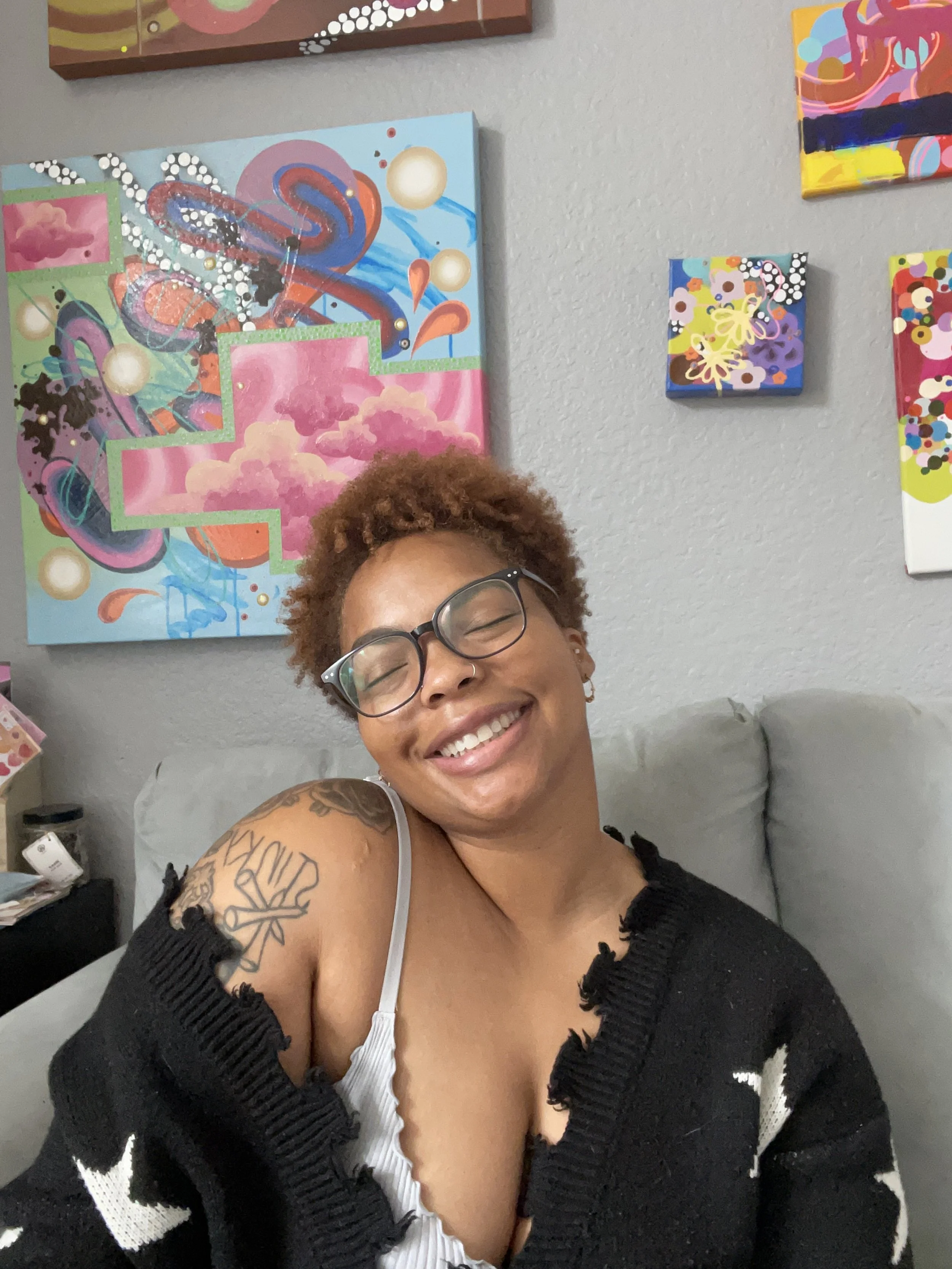 HI! Long time no talk. So much has been going on, and I’m still trying to figure out how to balance it all. But let’s start of with some updates. I’m a little more than half way through my school program! My projected graduation is mid June, which is a like a month away. Which is sooo crazy to think about. Just a few months ago I was slammed with book work, feeling very overwhelmed with how much of an undertaking learning a new skill was. Now I’m beginning for feel comfortable in a new medium and even building some confidence in what I am creating on these tiny canvases. This new medium has even inspired a new idea with my work, which leads me to my next update. I am one of the cohorts for the 2025 Austin Emerging Arts Leaders. This program is to help all kinds of different artists reach or make strides towards their career goals. They help us build resources, community, and skills to get us to where we dream to be. And at the end of the program we will be putting together a group showcase in September (MARK YOUR CALENDARS) of all of our projects we have been working on. I’v been playing with the idea of mixing my fine art with my nail art and bring both of these worlds together. I have a vision and I’m excited to bring it to life. All this while still working on other projects, applying to shows, being apart of group shows and pop ups, editing videos, making time for family and friends, and trying to take care of myself. It’s a lot of spinning hats at one time and has been an on going process of trying to manage it all. I realize this is a blessing to be overwhelmed in this way but I need to find balance so that I can sustain progress. I’v arrived at the understanding that there will always be a new goal, another project, or an opportunity that I don’t want to pass up but to be able to have the energy to show up to all those things and more the way I want to I have to prioritize rest and my health. Fueling myself to continue to treat the world like my canvas.
